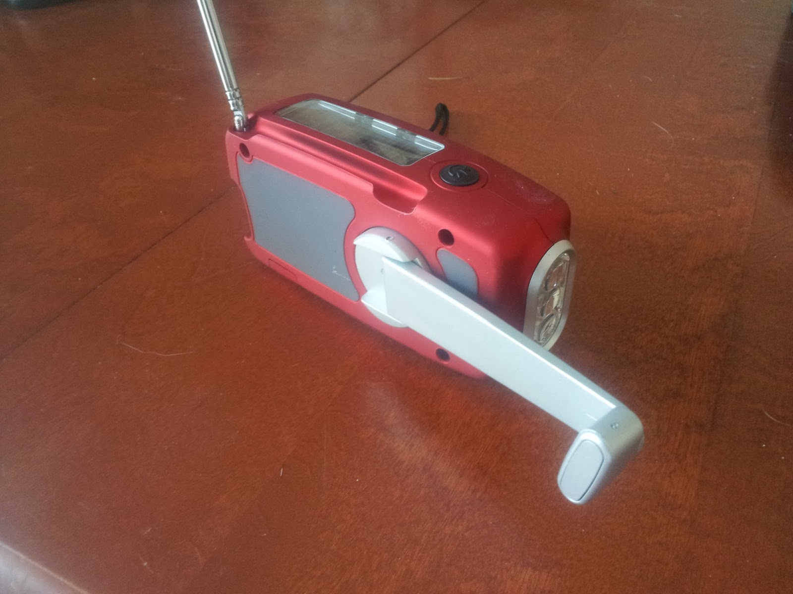 We recently purchased a wind up Radio/flash light/solar panel/cell phone charger for $33.00 online. With one minute of 'winding' the radio lasts for almost an hour. It also features emergency broadcasting channels with live updates of news and weather. Not only is this useful for power outages but will most definitely prove essential for any future Zombie Attacks!